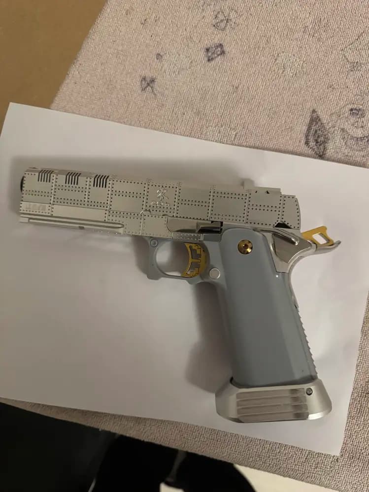 đ„ Premium Custom Hi-Capa â 42,000 kr in Elite Parts đ„This pistol is a true art piece. What began as an impulse became a mission to build the perfect Hi-Capa, using only top-class components sourced from nearly ten different stores. Every part was chosen for strength, reliability, and performance, with a focus on metal and brass to give the pistol real weight and a premium, solid feel.This is not a budget build. Itâs for someone who understands quality and sees the value in craftsmanship. The parts alone cost over 42,000 kr, not including shipping and import fees, and every component was selected to eliminate weak points and deliver consistent, high-level performance.INTERNAL PARTSNozzle/Gas: Revanchist SS Housing, AM High Flow Valve, COWCOW High Flow Valve + Blocker, Guarder Loading Muzzle Set, CowCow Pistonehead, Poseidon ICE PICK Valve, CowCow Valve Knocker Spring, AM Steel Disconnector Set.Springs: Nexxspeed 180% Nozzle Spring, NexxSpeed Short Stroke Buffer, NexxSpeed 140% Recoil Spring, AIP 140% Springs Ă2.Fire Control: AM Hammer Lock Pin, COWCOW Grip & Thumb Safeties, Cocking Lever RAW, AIP CNC Cocking Handle, AM Steel Slide Catch, CowCow Trigger Base, CowCow T2 Trigger.Hop-Up/Barrel: TTI CNC Brass TDC Chamber, AW Bucking, Maple Leaf 70°, Nine Ball 6.00 5" Barrel.EXTERNAL PARTSCOWCOW Thread Adapter, Rear Sight Screw Set, Grip Screw Set, 1911 Wood Inserts, COWCOW Grey Grip.