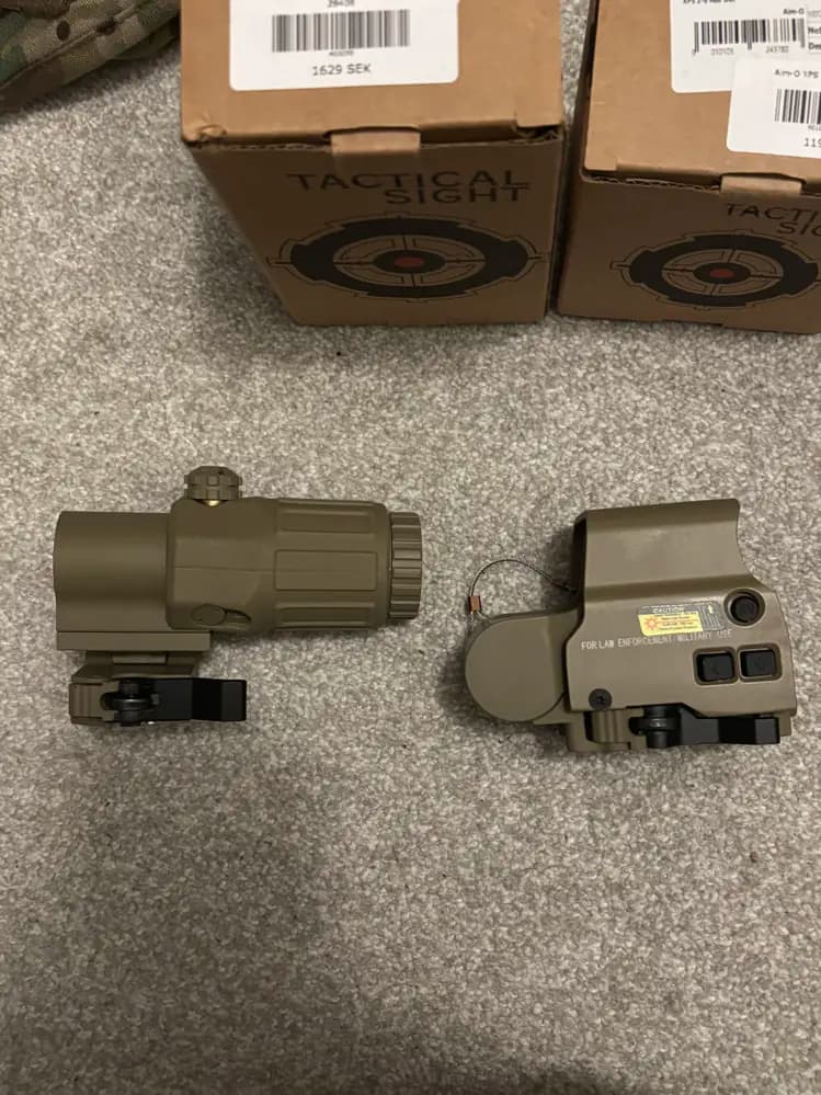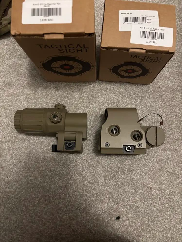 Säljer en Aim-O G33 3x förstoring och en XPS 2.0 rödpunkt. Båda enheterna är i ökenfärg. Fullt fungerande bara testat på bössan! Finns på tradera med! hämtas i Ystad eller skickas med PostNord spårbart paket!