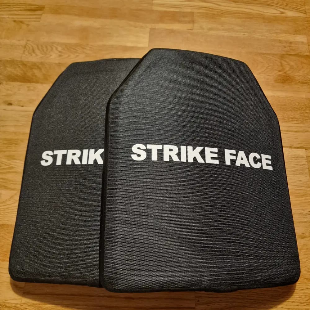 En par bra vikt träning plator till airsoft eller gym ca 2.9kg/st. Nivåer 6...7.62(AP) / 5.56(AP)skottsäkra ( ballistic plate). Helt nya.