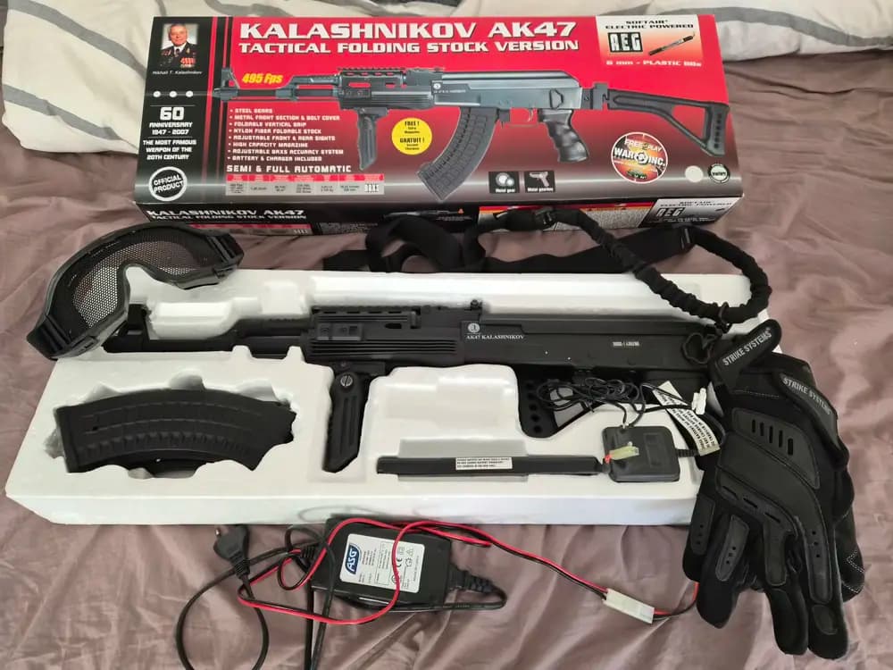 Säljer: AK-47 Airsoft-paket med tillbehör! 💥Jag säljer min AK-47 med alla tillbehör som ni ser på bilden.Jag ska flytta och har inte längre tid att spela, så det är bättre att någon annan som gillar sporten kan använda den.Jag säljer allt i ett komplett paket och inte separat.Vad som ingår: