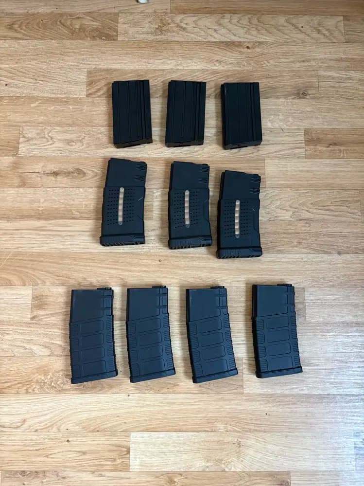 Tjena!Ar15 9st midcaps 1 highcap osäker på många BBs 750krSR25 10 st midcap från 180 cap och upp om jag minns rätt. 750kr