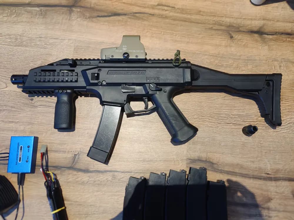 Säljer en Scorpion EVO. Har fungerat utan några problem i min ägo. Testad och skjuter ca 107 men 0,25g boll.