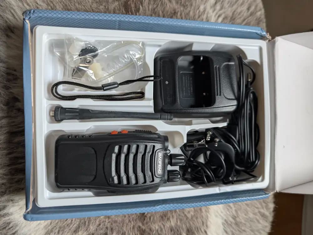 Detta är en Baofeng BF-888S bärbar komradio. Enbart upppackad för att testa.Men det blev ingen mer Airsoft och den har därmed legat i förrådet.Allt finns med i box.ex. Laddare2 olika öronsnäckorTeknik: Använder UHF-frekvenser (400-470 MHz) för tvåvägskommunikation. Funktioner: Inkluderar röstmeddelanden på engelska/kinesiska, en inbyggd LED-ficklampa och en energisparfunktion. Batteri: Utrustad med ett 1500mAh litiumjonbatteri för lång standbytid.Räckvidd: Kommunikationsräckvidd upp till 6 km i öppet fält.150 kr är rimligt. Kan fraktas eller hämtas. Swish innan frakt.