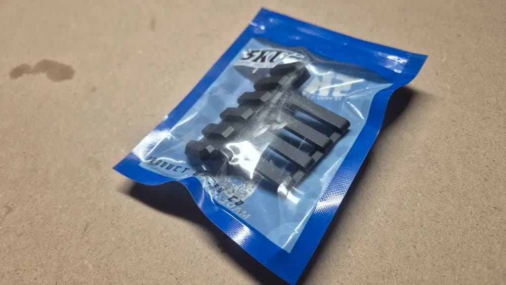 Kortare picatinny riser (~10mm hög), rester av grön färg - 20 kr