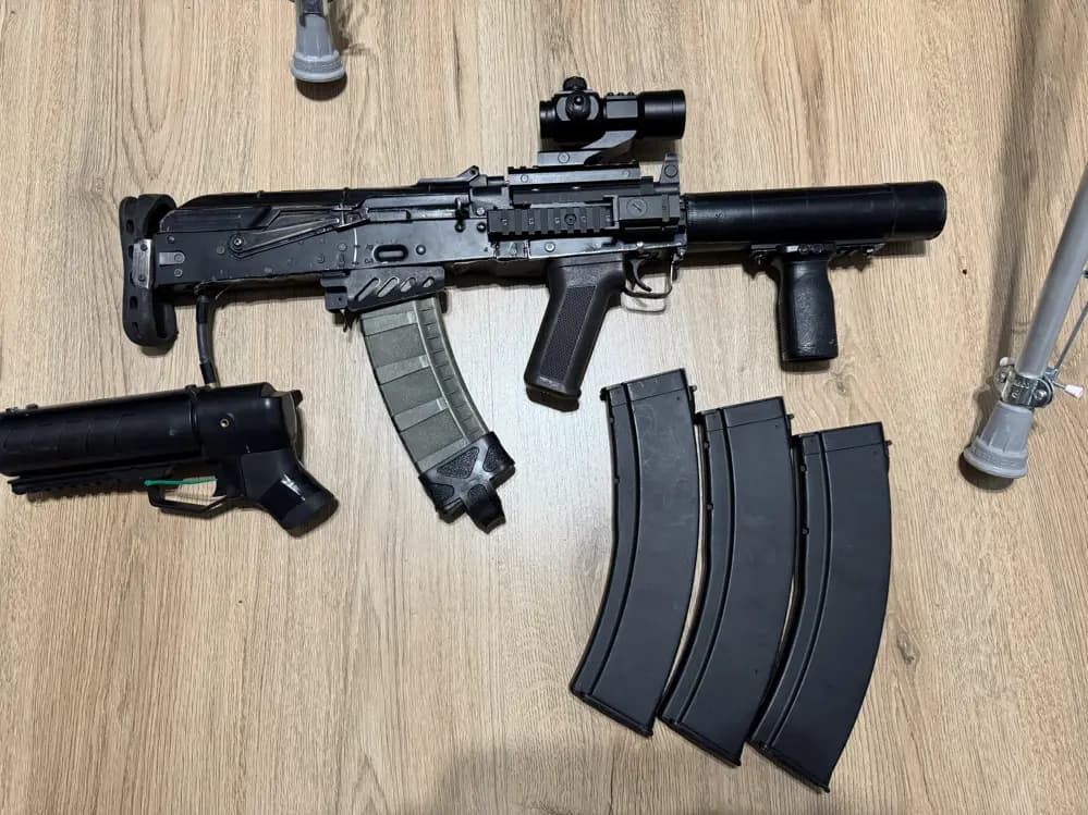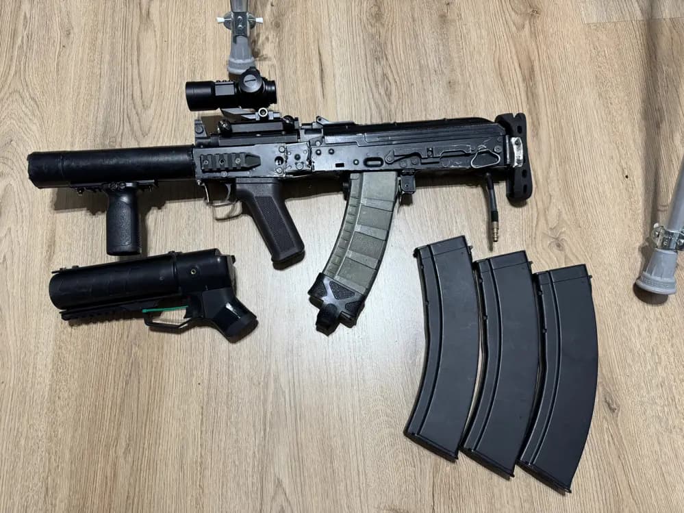 Gjord av nån betydligt smartare av mig här på dusty av 2st arcturus aks74uArcturus rotary hopup med maple leaf, madbull eller liknande presspipaAntingen kan man ha greppet vilket jag föredrog eller granatkastaren fäst under suppressorn. 4 magasin, sikte, laser allt på medföljer.