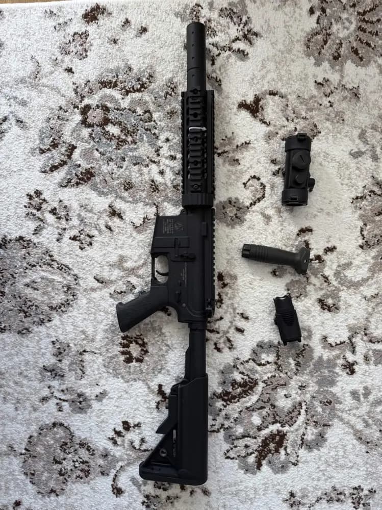 Selling my Colt Silent Ops M4 airsoft rifle. This is a solid, realistic M4-style AEG with a sleek all-black finish and a compact, tactical setup—perfect for both beginners and experienced players.Official Colt-licensed M4 platformSemi & full-auto firing modesAdjustable stock for comfortFull top rail + quad rail handguard for attachmentsMock suppressor for a stealthy lookDurable polymer/metal constructionIncluded:Red dot sightVertical foregripFlashlight Multiple magazines (including 1 hi-cap + 2 PTS EPM1 mags)Everything shown in the photosCondition:Well maintained and fully functionalMinor cosmetic wear (see photos), no issues with performanceGreat for CQB or outdoor play. Ready to use right away with attachments included.