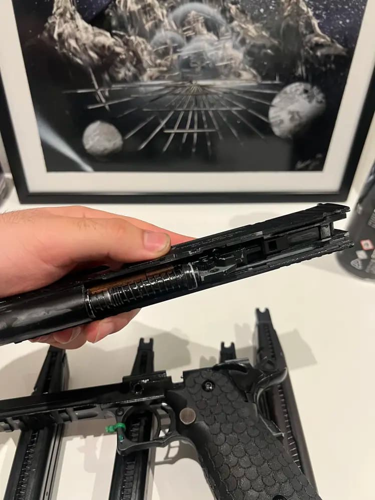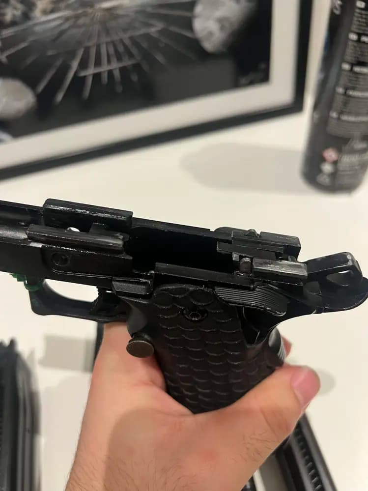 Hej! Säljer en Hi capa replika som är precis som den i John wick 3 om jag minns rätt. Har bytt gummi i den till en modify blå gummi, har även smörjt pistolen.Kommer med ett gas magasin.Tror förra ägaren försökt limma främre siktet av något slag då det finns märken av vad jag tror är limm.Rekommenderar er att spela med pistolen i varmare temperaturer då jag märkt att vid kalla temperaturer så kan pistolen knappt mantla bak helt efter varje skott och ibland bara spotta ut gas på grund av kylan.Mag releasen åkte lös då och då så jag satte skruvlåsning på skruven så får hoppas den fortfarande sitter fast efter all pangande, annars är det bara att sätta lite mer skruvlåsning.Ansvarar ej för postens slarv!