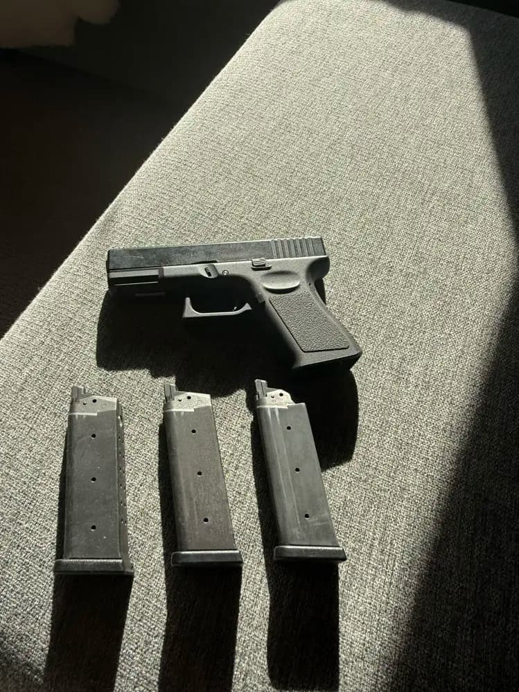 GBB G19 med 3st MagasinMantel av metallKropp av kraftig polymer21 mm rail för tillbehörAutentiska markingsMycket kraftig, ca 140 m/s