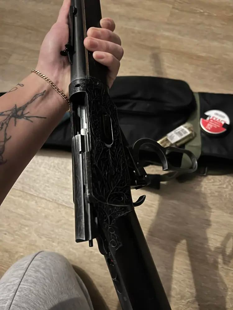Tjena, Säljer som rubriken lyder. Men då trä färgade delarna som är plast har målats över med svart. Med handgjort engraving runt kroppen.Medföljer: Vapenväska, Antal patroner cirka 30, Orginal kartong medföljer också. Vill säga att den har gas läcka. Är ingen gasläcka nörd så väljer och sälja bössan och därav priset. Övrigt så skjuter den extremt bra och rakt och laddar patronerna i loppet perfekt! Finns i kristianstad att hämtas annars kan den postas men köparen står för frakt kostnaden.