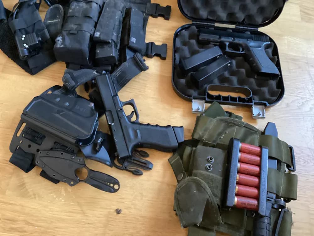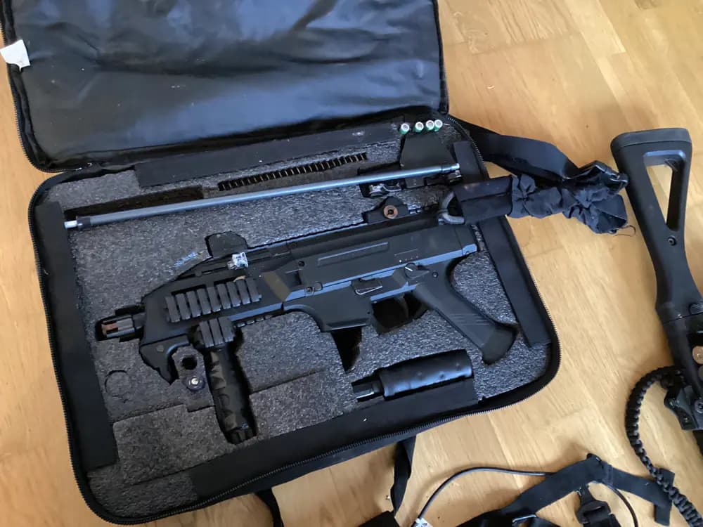 En Fabarm stf12 med:20 patroner. lufttank om man vill ha det. Väst med fickor för hylsor och tomhylsor.en asg scorpio med:10 magasin. Rödpunkt. Ljuddämpare. 5.11-system för att bära allt. 100 och 120-fjäder. Umarex Glock (kolsyra) med 3 magasin i lårhölster från 5.11en ASG glock(gas) med 2 TRASIGA magasin(en läpp som håller i kulorna har gått av på varje)pris är högsta bud fram till 1/3 eller uppnått utsatt. Kan hämtas, ingen aning vad frakten går på.