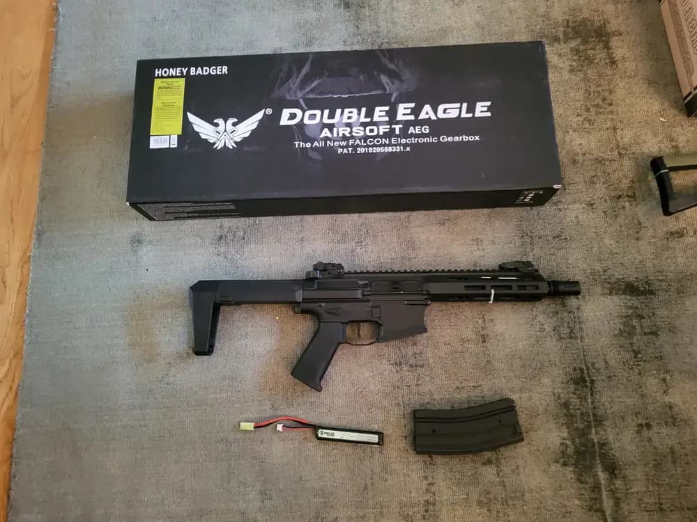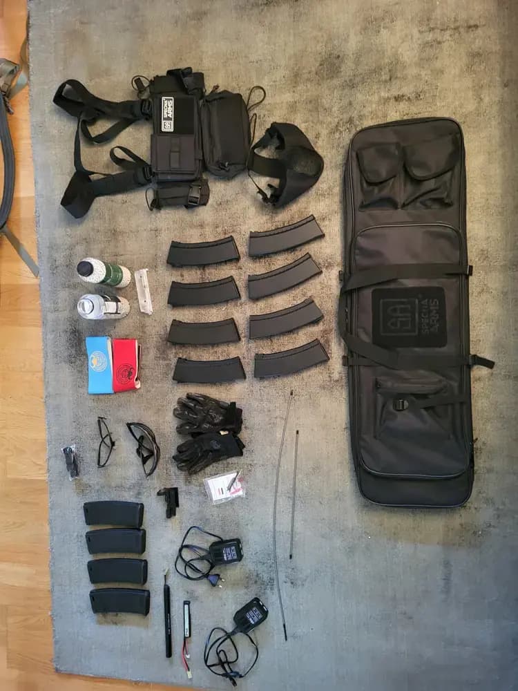 Hej! Säljer nu mitt airsoftgevär och en massa tillbehör då jag har tappat intresse och de knappt kommer till användning. Geväret är bara använda ett få par gånger och fungerar fint. Jag har 4 midcap magasin från specna-arms till honey badgern. Man får även med sig batteri till och en batteriladdare dock kan man behöva en adapter till de batterier med gröna ändar (Tamiya), Ett red-dot sikte som behöver nytt batteri,skyddsglasögon, handskar, gevärväska mm. Allt går att köpa seperat. Om man har några frågor så är det bara att skriva. Mvh Elia