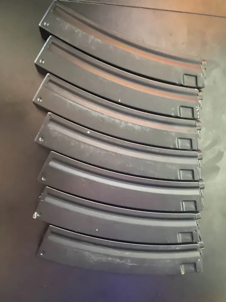 7 Stycken mp5 magasin av cyma. Rymmer 200 kulor styck. Minimala repor på vissa magasin. Inga skador som påverkar magasinens funktion. Ett magasin har ett hjack i botten men fungerar utmärkt.Frakt debiteras i efterhand beorende på vad det kostar att skicka.
