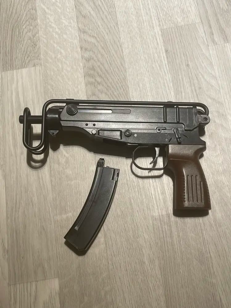 Säljer den för att jag ska flytta. Vill ej att den ska följa med för annars kommer den bara ligga någonstans och inte bli använd. Detta var ingen Airsoft som jag använde när jag tävlade, den var mer en prydnad. Det är en 6mm och fjäder. Den skjuter semi. Säljer den billigt så någon annan kan ha användning för den.