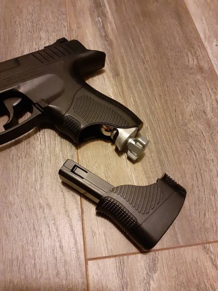 CO2-driven halvautomatisk luftpistol med 21-skottsmagasin för 4,5 mm rundkulor. Maxhastighet upp till 150 m/sek. 2 patroner och orginalkartong ingår. Bjuder på frakten vid snabb affär! nypris 1300kr