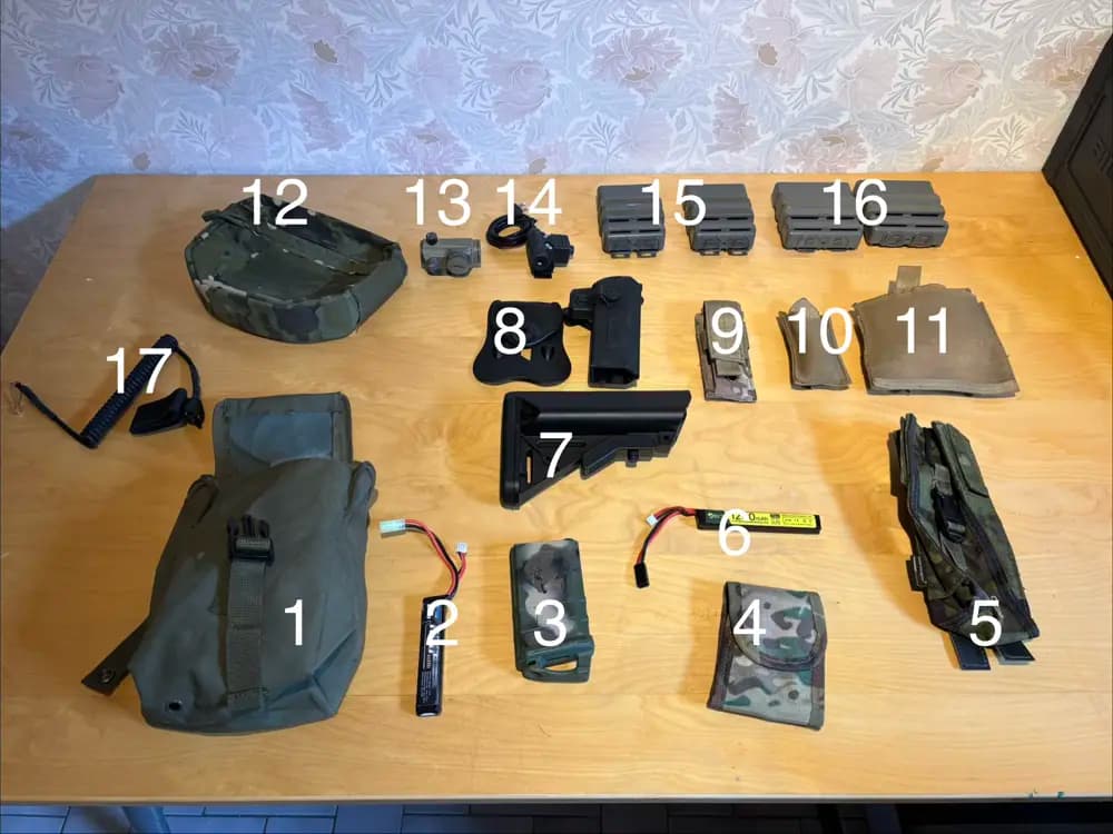 12 Pouch med kardborrefäste, hänger fram och längst ner på väst.