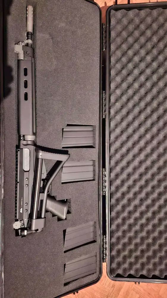 Classic army sa58 aeg. Skjuter långt och rakt. Föredrar en något svagare fjäder än den som sitter i nu. Har 120 fjäder ca tror jag. Använd 1 spel, säljes då jag går tillbaks till gbbr