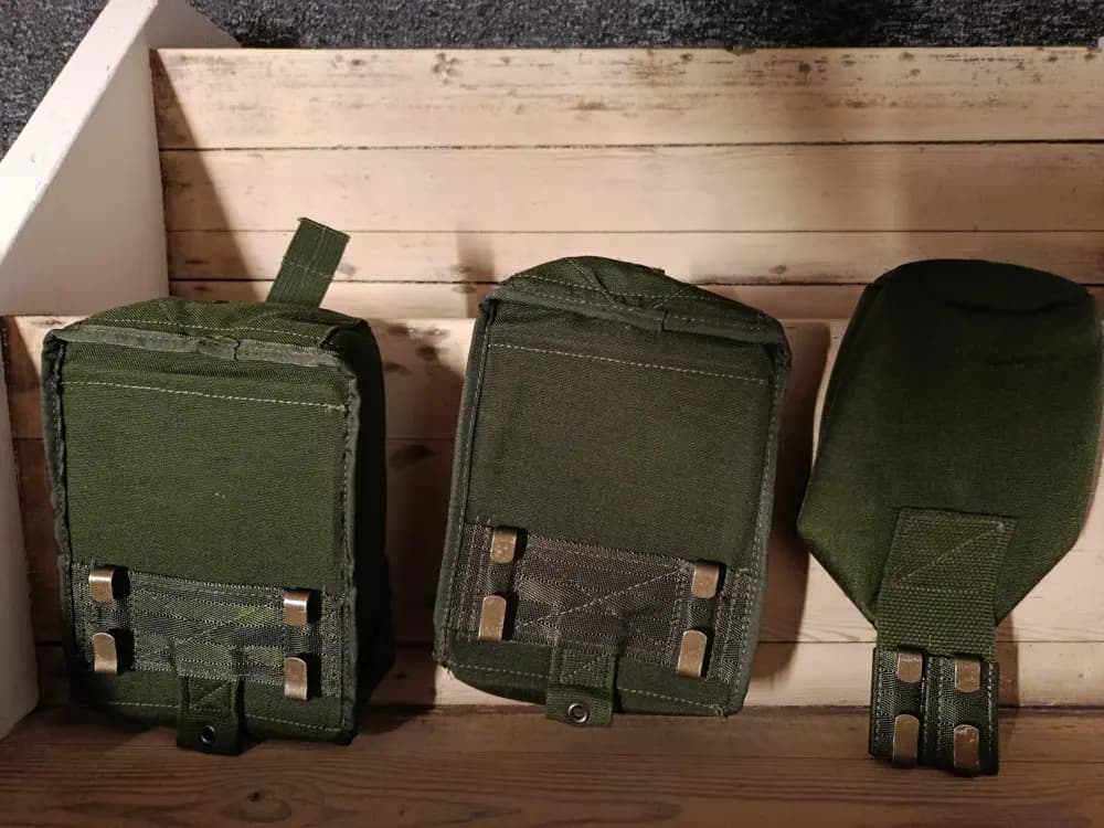Magasinsfickor och vattenflaskficka till bärsystem 304k.Nyskick, ej använda.Köparen står för frakt och betalning ska ske innan varorna skickas.