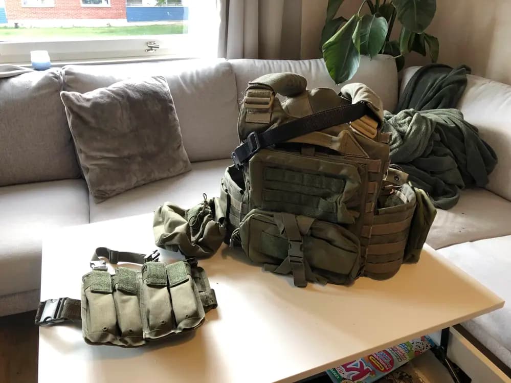 Säljer en grön plate carrier i storlek M med tillhörande pouches samt en dropleg panel för extra magasin. Den har använts med Kriss vector magasin och har fungerat utmärkt. På den sitter en open pouch för 4st magasin, en dump pouch, en admin pouch, en deadrag som lätt kan dras fram. Det är även dummy plates av skumgummi i den för att den ska har rätt form. Sitter även en backpouch på för att fylla ut lite på ryggen då jag upplevde det som lite tomt annars.Är i mycket bra skick och har ej haft några problem med den. Skriv gärna om ni har frågor eller vill ha fler bilder.Kan skickas eller hämtas i Uppsala.