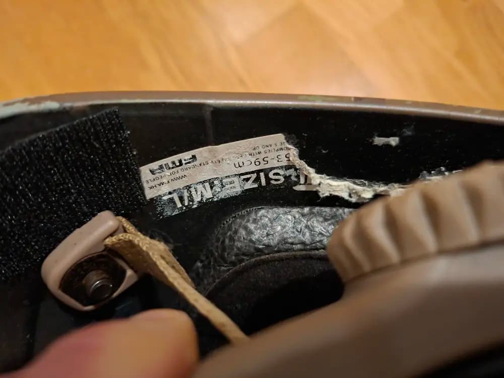 Hjälmen är välanvänd, men mountet är i väldigt fint skick.