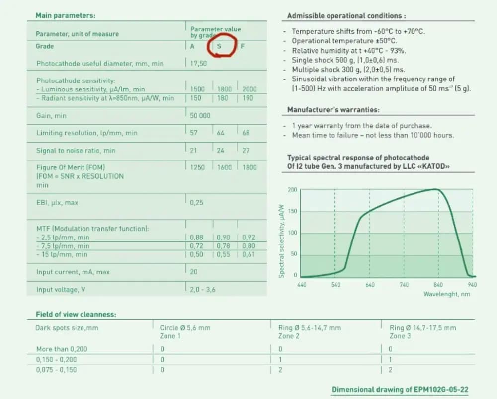(beware this is NOT the same tube I sold earlier) can consider a lower price at a fast deal.Tube is A gen 3 katod EPM102G-05-22. S variant, see specsheet for more infoThe tube is completely clean with no peppering, blems or issues. Picture don't make it justice. The housing is a ONV-I, which is a good quality housing. Comes with mount for wilcox, daycap and a carry bag. (Mounting system that doesn't require a helmet can be solved) Feel free to dm if you'd like more pictures or videos. Let me know if you'd be interested in trying it out first. (located in Farsta stockholm)(Writing in english for potential international buyers)