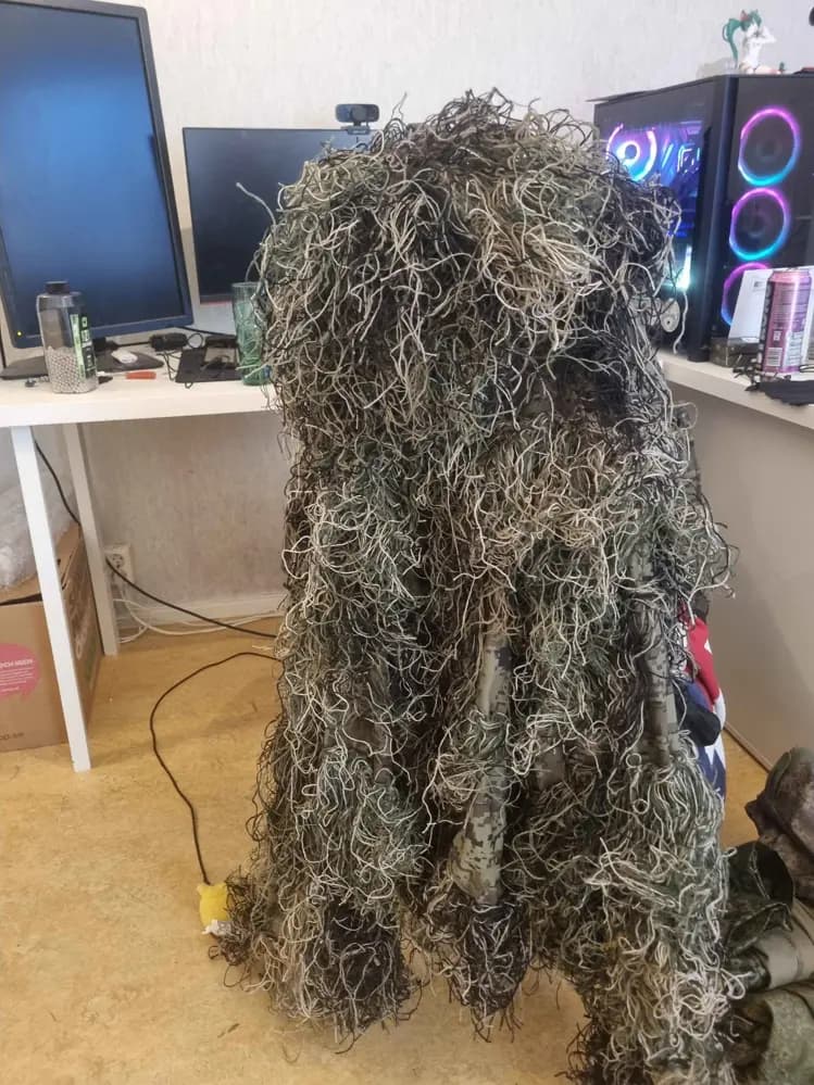 "emr" full back viper hood ghilliein good condition and effective camo for outdoor gamesmodefied it from a jacket to a viper hood so you have full access to your rig and mags