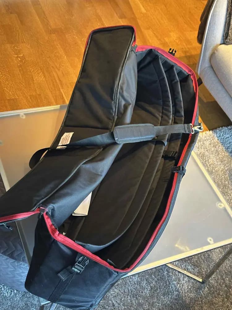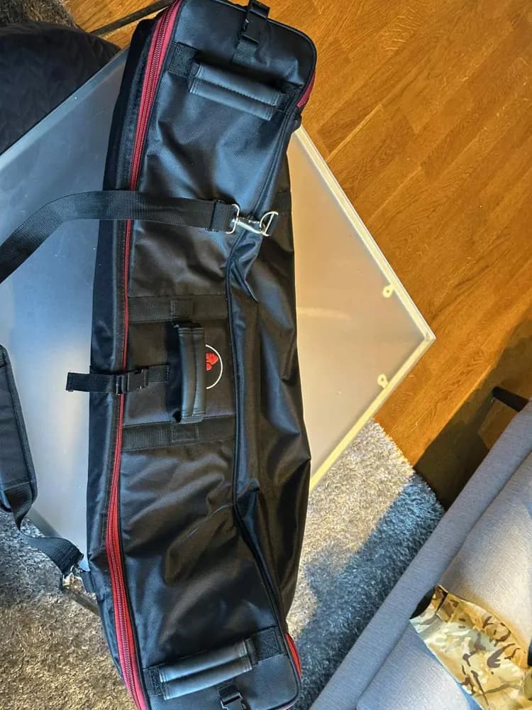 Gorilla Truss bag.Jag har använt den för att förvara och flytta på lånevapen. Fick plats med 6st m4or utan problem, 2 i varje fack.Går säkert att få ner fler!Axelrem, bärhandtagInsidan är 102x29x23cmSparsamt använd