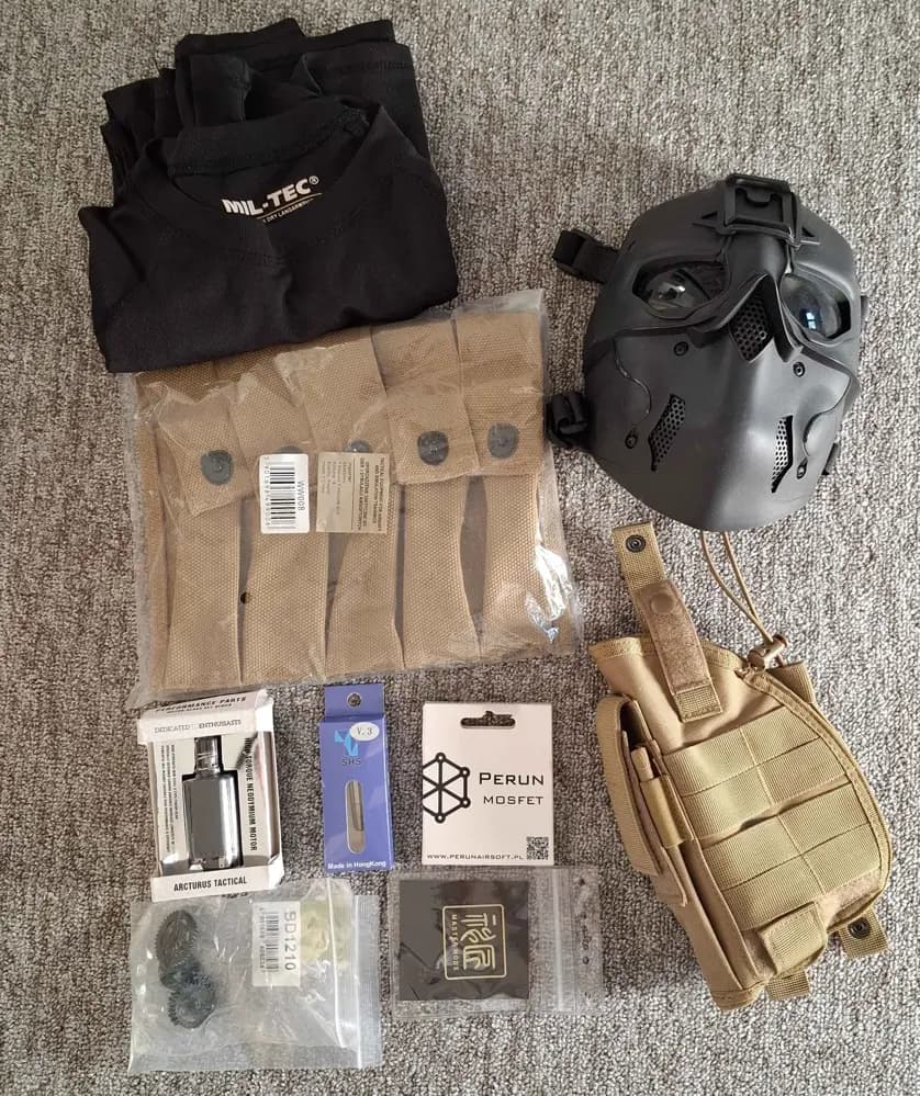 Rensat lite i gömmorna och har lite jag nog inte kommer använda.Aldrig använt:Perun mosfet (liten)SHS springguide 18:1 guggar (stål minns ej fabrikat)Meetall nubb x2Arcturus high tourque motor Magasinficka för Thompson magasinSimpelt hölsterMask (behövs glasögon under)Begagnat:Miltec tröja med veldro på armarna (small men mer som en large på mig 170cm)Om något är av intresse släng iväg ett meddelande!