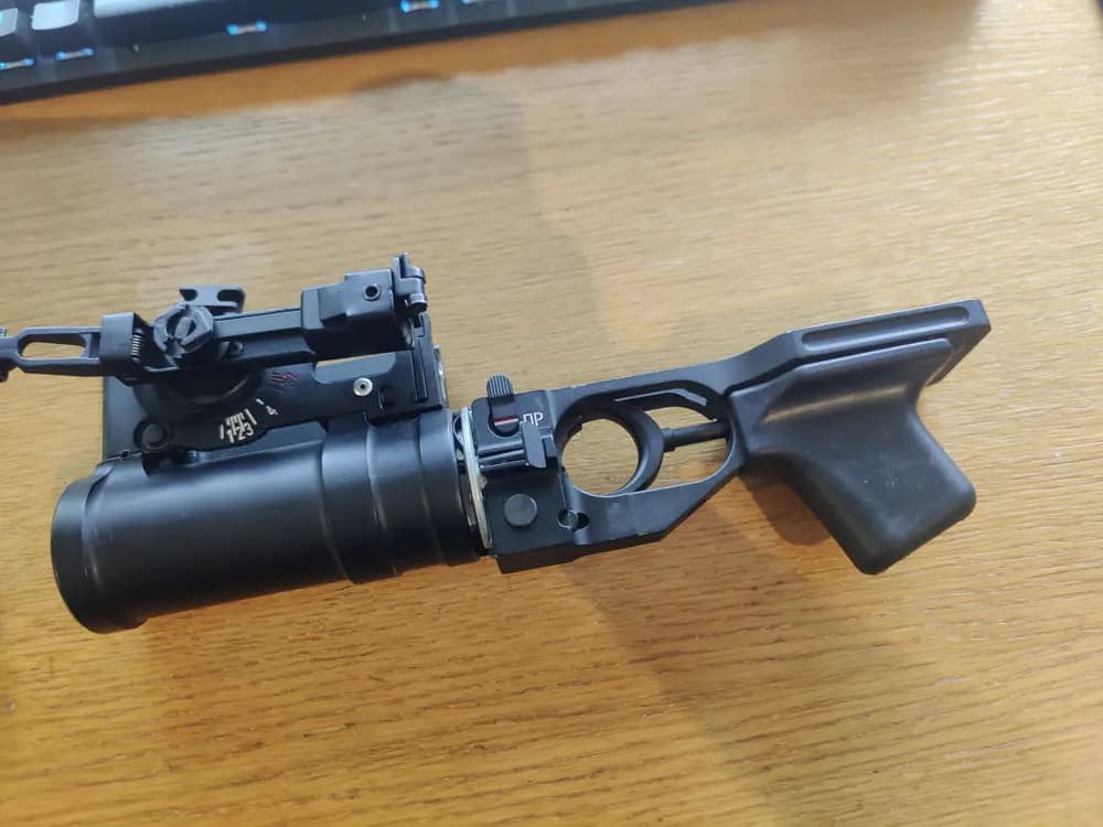 GP-25 Granatkastare för AK modeller. D-Boys? Monterat den på min Cyma AKM och WE AK74. Granaten behöver smörjas, annars fint skick! Drivs med greengas. Finns i Östersund men kan skickas om köparen står för frakt. Skriv gärna om du har frågor!