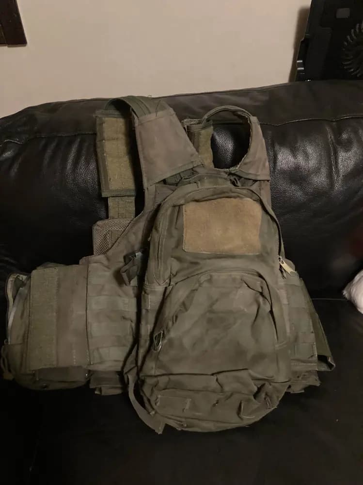Guarder väst inkl. en daypack med en 3L camelbak och div. fickor. Dustad för en mer realistisk look. Finns att hämta i Mullsjö, kan ev. tas med till Tidaholm eller Jönköping. Kan skickas om köparen står för frakt.