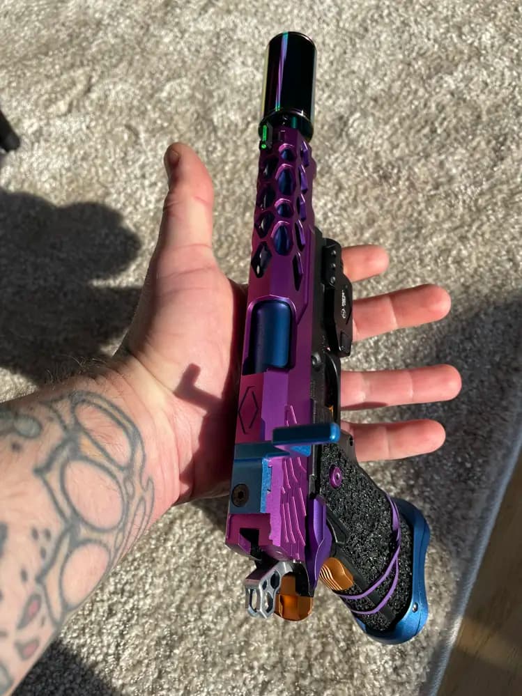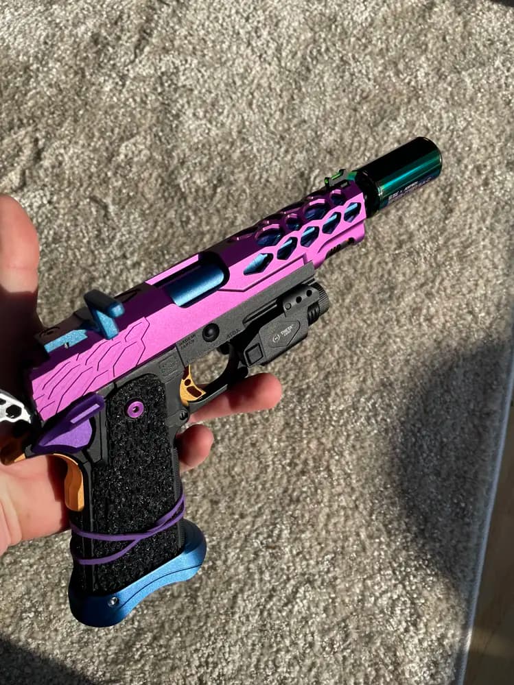 Speed Capa byggd på TMByggd för att gå snabbt men fortfarande ha en grym precision.Frame & Grepp är TM orginal greppet har jag stripplat.Slide: Edge Customs. Charging Handle: Revanchist. BBU: Edge Custums. Nozzle Spring: CowCow 180%. HopUp: TTI TDC (Helt Ny) Innerpipa: TTI stainless 6,03Ø. Ytterpipa: LA Capa.GuideRod: Edge Customs. RecoilSpring: Dr.Black ShortStroke Spring.Hammare: LA Capa. Gripsafety: Edge Customs. Guide Plugg: 5kU. ThumbSafety: 5kU. Trigger: Edge Customs. Magwell: LA Capa. Interna delar består av CowCow, AIP, NineBall.Tracer och Lampa ingår inte men är dom av intresse så kan vi diskutera det :)är det något du undrar så fråga på!köparen står för frakten. Alternativt avhämtning.