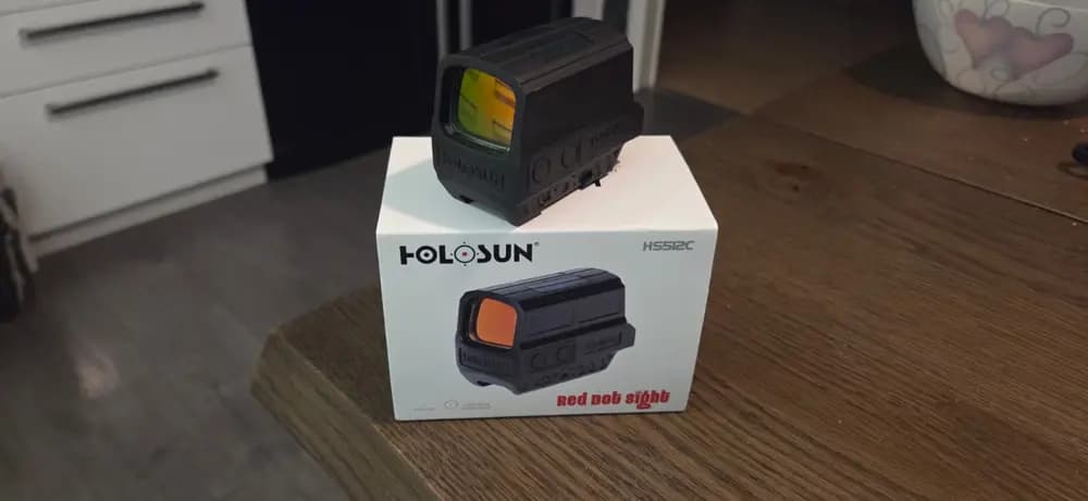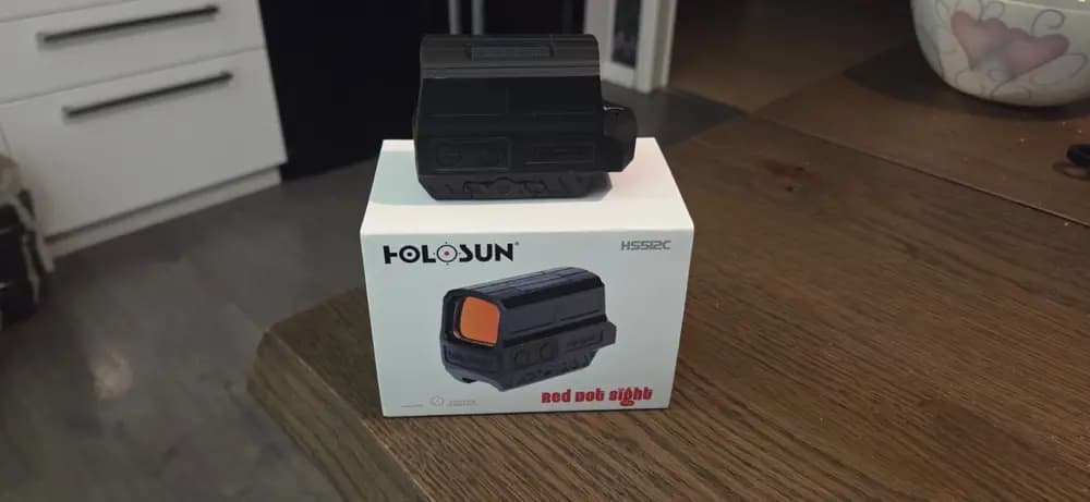 Quitting airsoft and liquidating my gear, selling Holosun HS512C red dot sight.Bought 2-3 years ago, used max 5 times.Quality: Almost new with couple of tiny scratches.Works perfectly, have box with the tool and documentation, as far as im aware they have lifetime warranty.