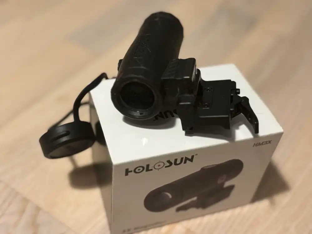 Holosun Magnifier, exempelvis modellen HM3X, är ett optiskt förstoringsglas med 3x förstoring som används tillsammans med rödpunktsikten för att förbättra siktesbilden och möjliggöra bättre målfokus på medellång distans. Den har ett robust aluminiumhölje, snabbt och enkelt fäste för Picatinny-skena med flip-to-side funktion, vilket gör att den lätt kan fällas åt sidan när förstoringen inte behövs.Tekniska specifikationer för HM3X inkluderar:• 3x förstoring• Ögonavstånd på cirka 70 mm• Synfält runt 7 grader (ungefär 37 MOA vid 100 yards)• Vatten- och dammtålighet enligt IP67-certifiering, vilket gör den tålig även i hårda förhållanden• Justerbar för vind- och höjdinställning för exakt nollning av optiken• Vikt runt 278-304 gram med monteringsfäste inkluderat• Diopterjustering (+3 till -3) för att anpassa fokus• Kräver inga batterier då den är en passiv optisk förstoring