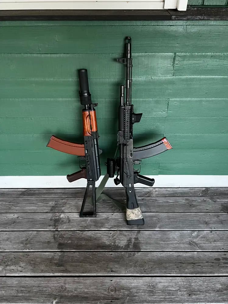 Intressekoll på mina E&L AK74or. Anledningen är då jag är intresserad att gå över till ett gas gevär istället för el. Kom gärna med bud eller om du är intresserad av byte! (Byter endast mot Gas bössor)de båda är ifrån E&Ls essential serieAK74 har varit med ett litet tag, har "battlescars" på sig men fungerar klockrent! Kronar ca 1,35J med orginal fjäder.AKS74U är rättså ny, bara använt i ett fåtal spel men är som ny! Kronar ca 0,8J med annan fjäder, har kvar orginal fjädern så den kan också ligga på ca 1,35J.har 7st magasin5svarta (tror det är cyma)1st E&L original i Bakelit1st cyma highcap i Bakelit2st Batterieventuell frakt betalas av köparen