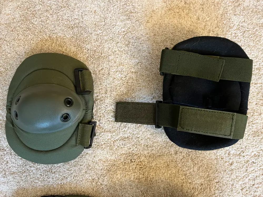 Töjbar velcro på armbågskydd, samma med knäskydden fast de har en quick release funktion. Gröna. Skickas i kartong.