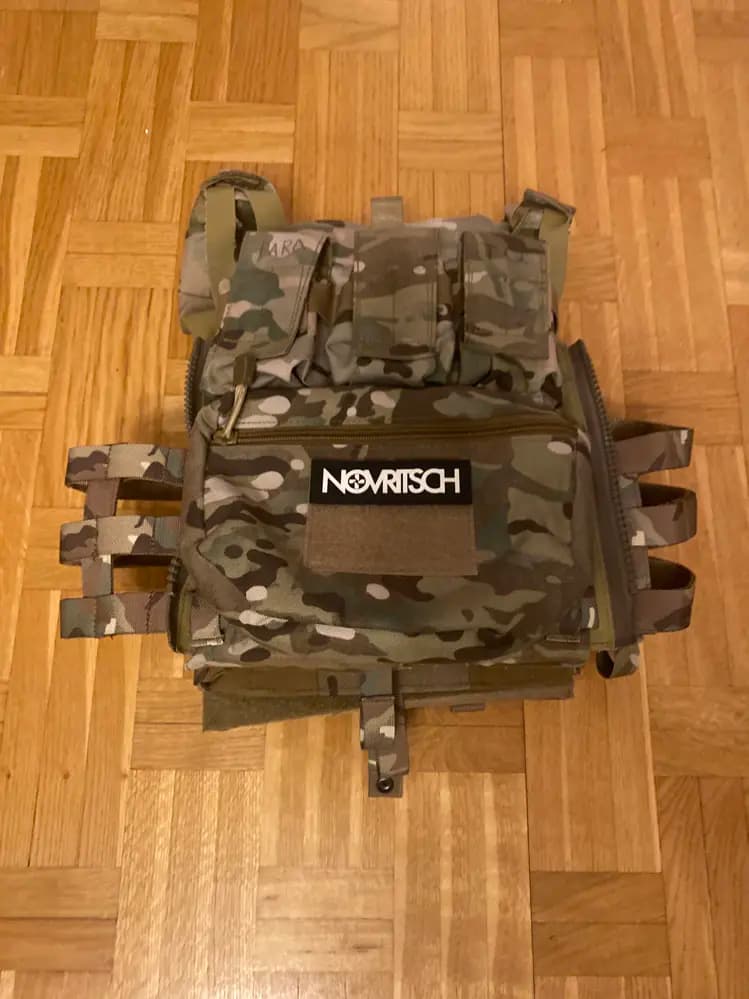 En riktigt bra och snygg jpc som har rätt mycket saker på sig. Den är redo för spel så fort du köper den. Den har en mobilhållare för ATAK eller andra kartor. En bra backpanel och plats för 6 magasin där framme. Paket pris går att lösa kolla profil för fler saker.