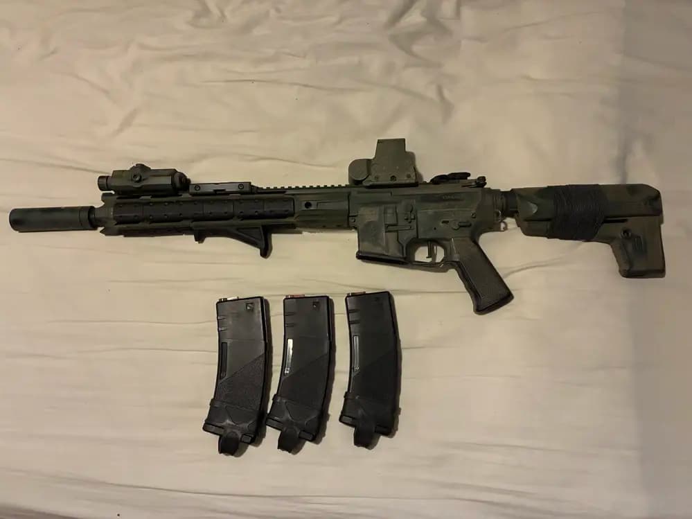Säljer denna magiska m4, Re-shimmad, perun v2 installerad, uppgraderad pipa med CZ leopard och aimtop gummi, chronar precis under 1j (cirka 0.96) med ,32g boll, tät och skjuter jättefint. Peq medföljer inte. ett 7.4v batteri medföljer samt 3st Krytac mags.