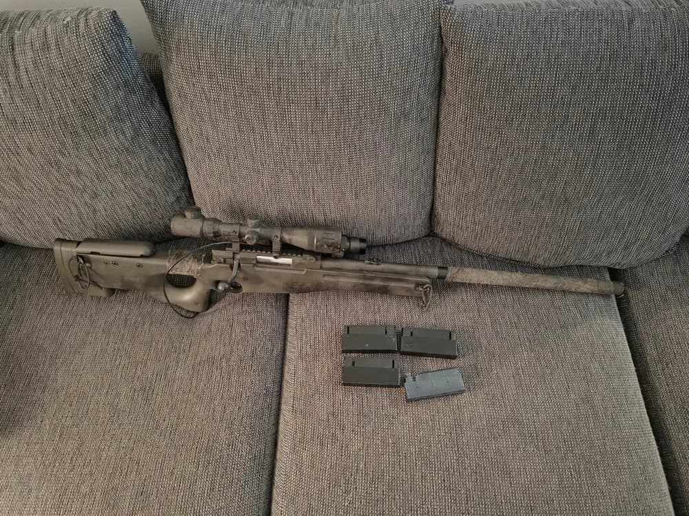 Säljer av min L96a som precis blivit färdig.Kört 3 spel med den.Sitter helt nytt mancraft i den. Fick fila om själva luft delen för den passade inte i cylindern. Inget som gör någon skillnad.Sitter tridos TDC 2.0 i denAction army hopup hus.Maple Leaf 6.02mm pipa 510 lång.5 magasin ( 1 som strular lite ) 1 sitter i bössan på bilderna.Målad! Ral7013 o svart.Sitter balystic regulator samt balystic co2 adapter.Bara o skruva i en co2 patron o kör. Räcker ca 5/6 magasin.Theta 1x4 sikte sitter på.Skickar den helst inte pga lång o väger 4.8 kg.