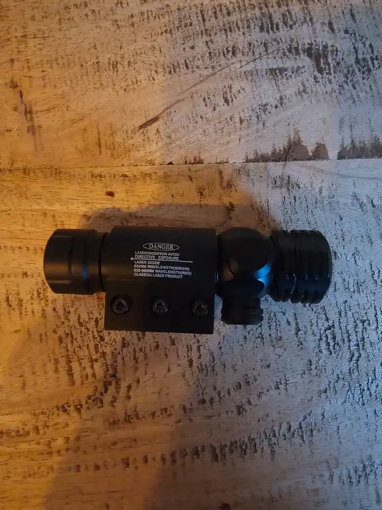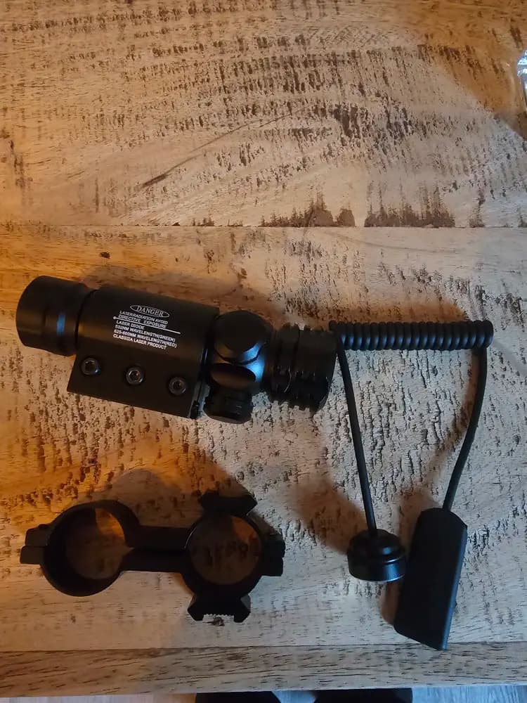 Helt ny laser bara monterad på bössa 1 gång med följer olika fäste för rail och även på ytterpipa