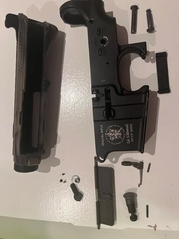 BILD 3 ÄR EN BUNDEL/PAKET PRIS de som ingår är upper resiver lower resiver och allt som behövs för dom utom mag relis, kan sätta ihop den inan jag skickar om man inte orkar fippla med de. Alla små skruvar och pil följer med och allt är metal 750kr