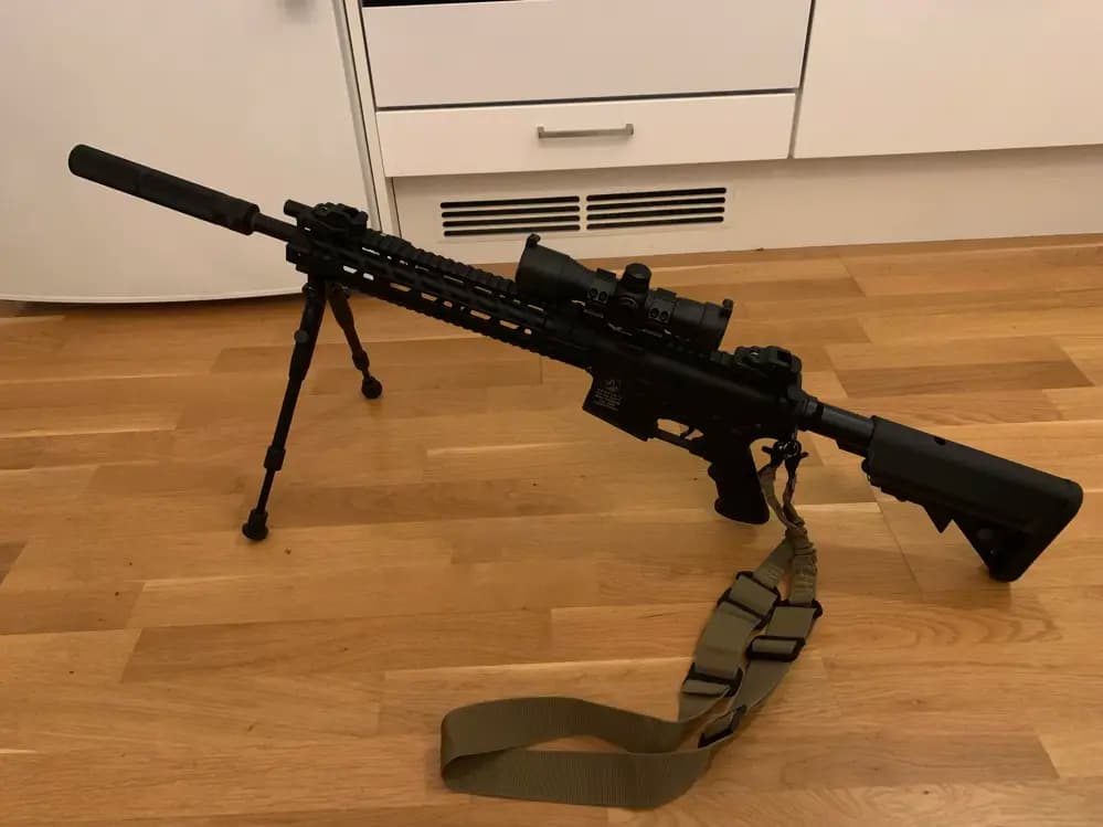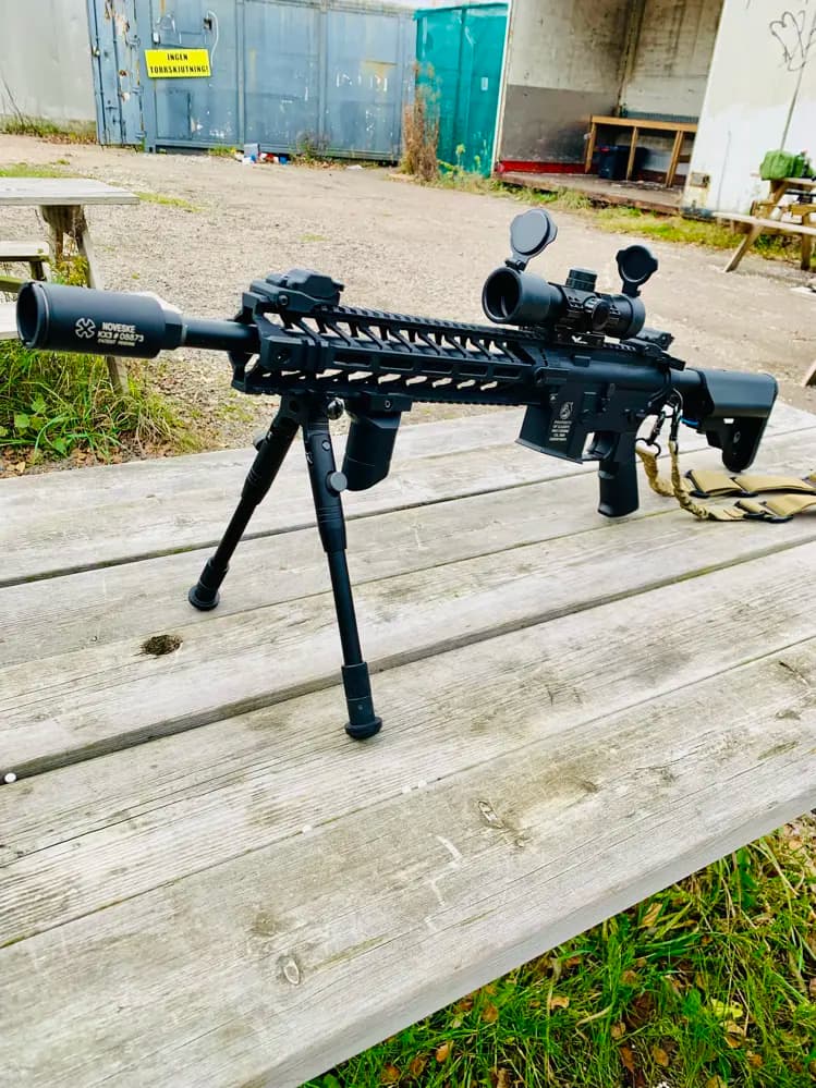 Jag ett helt nytt gevär med utrustning ! Har aldrig spelat utan skjutit några gånger på tomten . Ingår batteri och laddare samt två magasin . Har kostat mig ca 4500kr säljer för 2900kr . Obs som nytt . Vill prova köpa ett annat gevär och ha en handen när man ser krigsfilmer haha . Kan hämtas och provas i Helsingborg eller skickas med PostNord