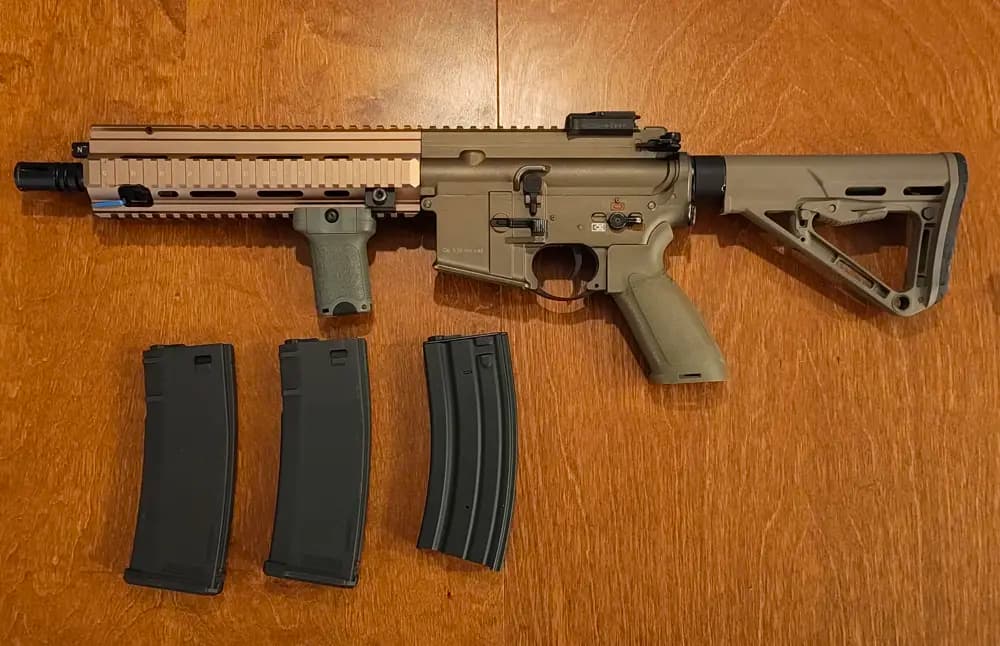 Orginal hoppen är sönder då jag bytte ut mycket i denna innan jag flyttade över dem till den andra bössan. Men utöver det som funkar den utmärkt. Full metal kropp, har en picatinny rail för många mods, samt lätt att uppgradera med tiden. Kommer med 2 Mid caps och 1 HicapKör helts upphämting I spånga vill ni ha frakt så får ni stå för det. Pris kan diskuteras vid snabb affär