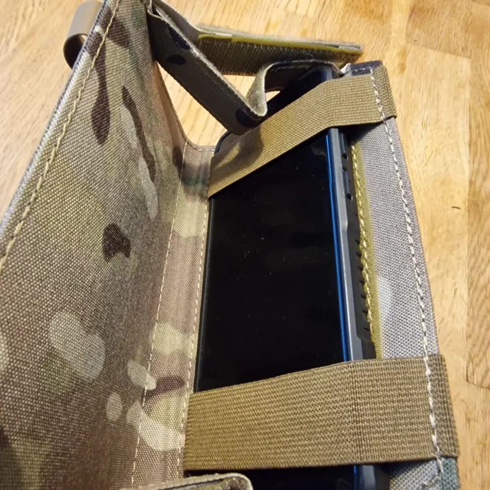 En camouflage milsim mobil pouch, perfekt för airsoft milsim spel, GPS korta/ uppdatera snapp med nya uppdrag. Stor Kardborreband för din favorit patch.
