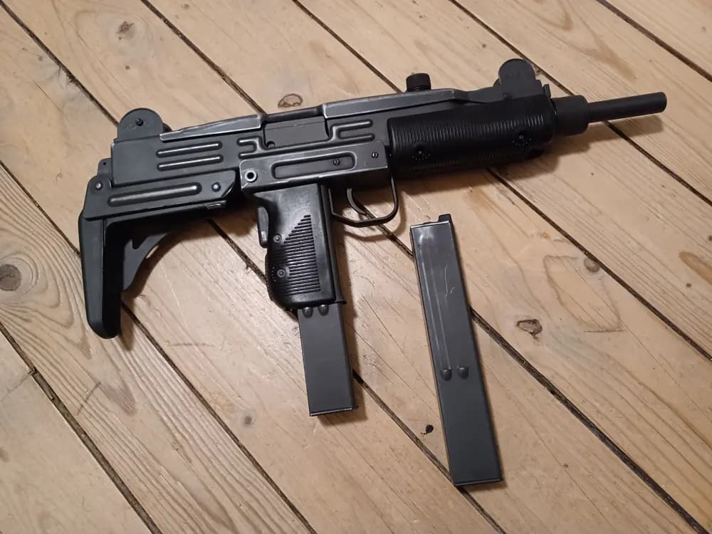 Säljer en gbb uzi från northeast.Knappt använd och minimalt med slitage.Intern är den batch 2 och funkar fint (till skilnad mot batch 1). Helt ny nozzeln, Skjuter ca 1.4 joul med röd gas. Har ett litet rör man kan setta I nozzeln för att få den under 1 joulMagasinen är uppgraderade med batch 3 delar , nya packningar och båda magasinen är täta Köparen står för frakten. Finns att hämta I Backaryd strax utanför Ronneby.