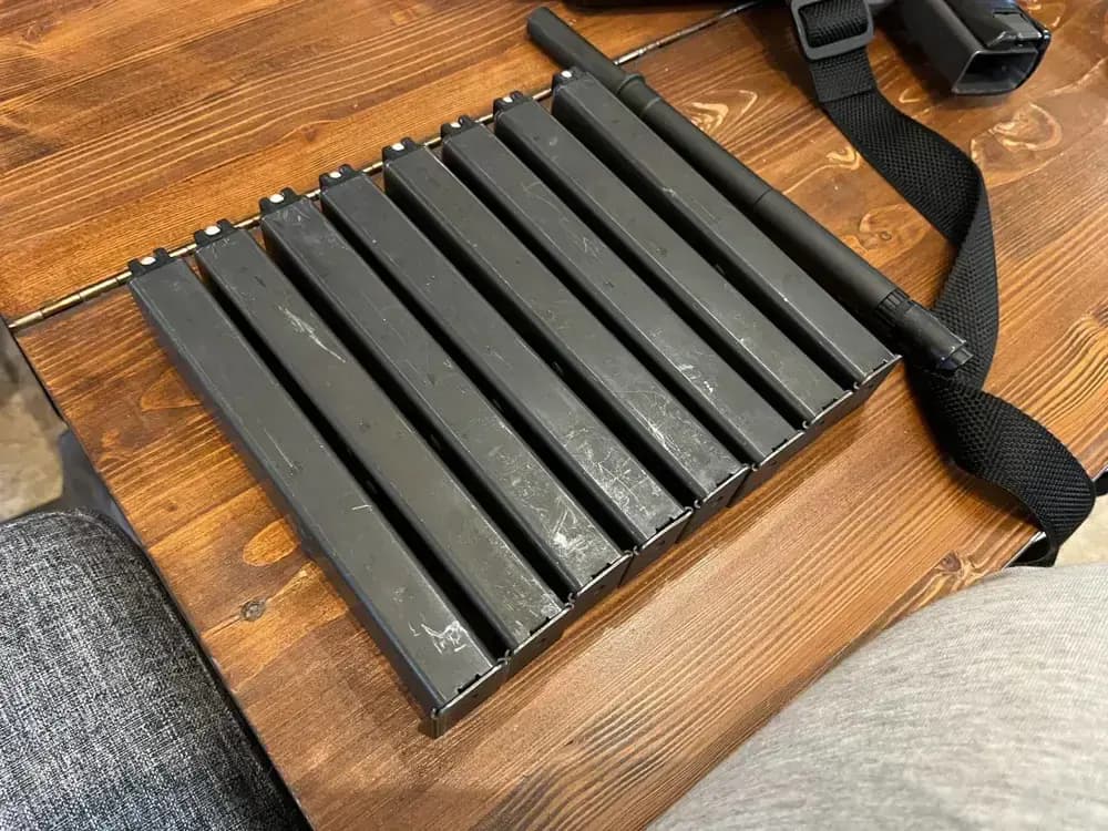 Northeast Airsoft UZI, fully functional and with a solid recoil. All steel parts like its real steel predecessor and really well modeled. Comes with 8 magazines, 2 different barrels with inner barrels and hop ups.Aluminum and steel lock (for summer and winter use). This also affects the amount of recoil. Comes with a bag of spare parts and a 3D printed adapter to make loading the magazines easier. With a short barrel, the power is about 1.2J, with a longer barrel about 1.6J with red gas. More information and pictures and videos are available for those interested.Willing to ship anywhere in Europe.
