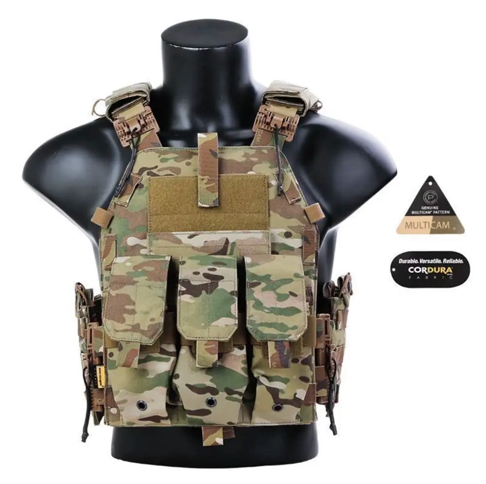 Robust och mångsidig taktisk väst med MOLLE-system för enkel anpassning. Västen har justerbara axelremmar med Quick Release funktion. Kommer med en trippelmagasinficka. Tillverkad av slitstark Cordura-väv. Perfekt för airsoft, paintball eller andra utomhusaktiviteter.Multicam mönster, inga plattor ingår.