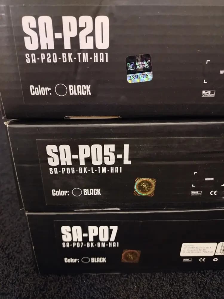 Ny Specna Arms Prime gevär SA-P05/SA-P07/SA-P20 På grund av missförstånd fick jag tre Specna Arms Prime-modeller som gåvor. Därför är två av dessa tre alternativ tillgängliga och jag behåller den överbliven. Alla gevär levereras som startpaket - 11,1V/1500mAh/LiPo-batteri - Smart LiPo-laddare - 1kg/BIO Precision-kulor, antingen 0,30g eller 0,25g ingår i priset.Vid behov finns det även några fler påsar kulor tillgängliga. Om du är intresserad av någon modell och vill ha fler bilder, låt mig veta. Replikor bor i Vanda Finland men fraktkostnaden till Scandinavia är rimlig, 19€.Gevär och delar är helt nya.Pris är för 1 gevär + LiPo batteri + laddare + 1kg påse precision-kulor