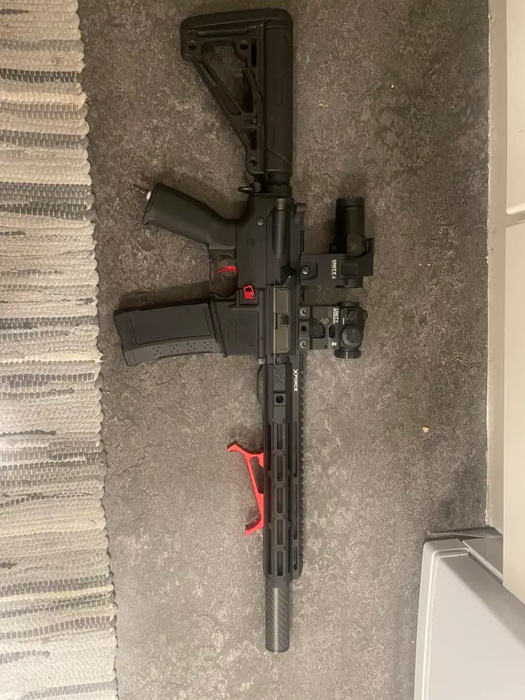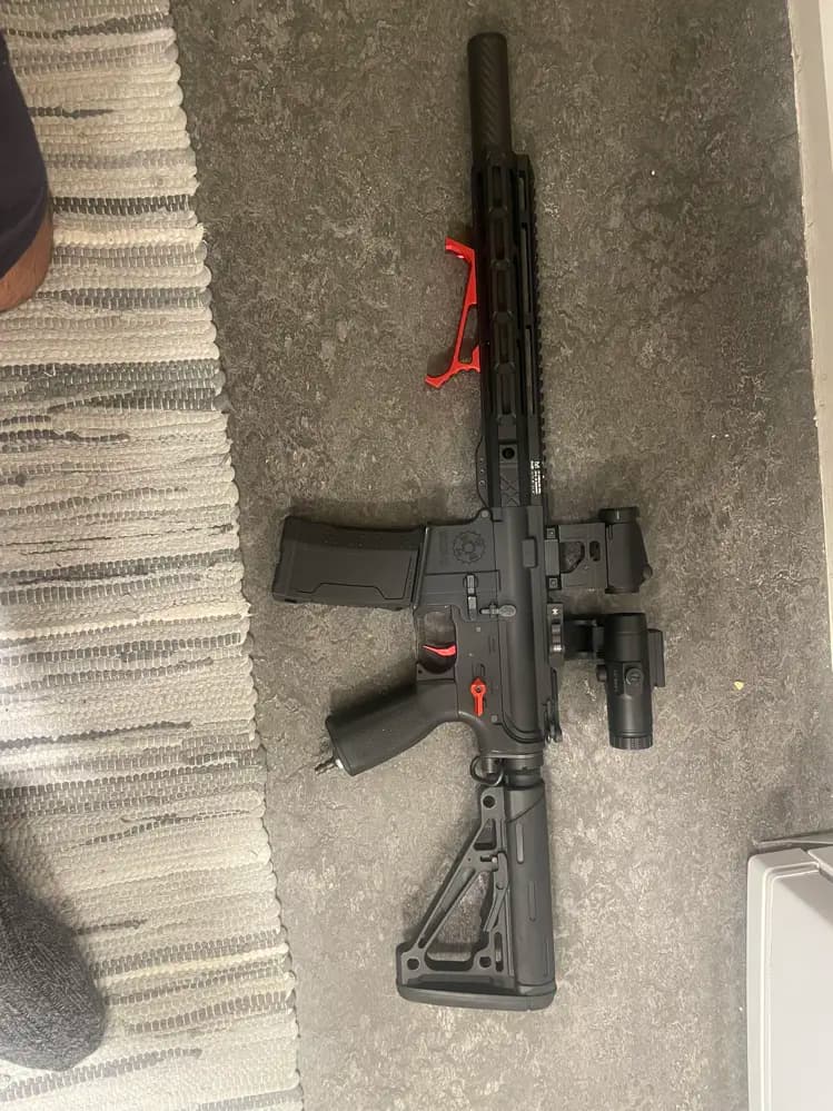 Säljer denna skönhet från umbrella armory deras flaggskepp kostar över 3000 euro helt jävla sjukt för en Airsoft vapen sjukt jävla överpris men men fungerar väldigt bra och att den väger fan knappt något. Känns som siktena som sitter på väger mer en bössan.Detta är en OCAW XF11 med sparklabs wolf motorn ska vara den mest luft effektiva hpa motorn i marknaden. Annat som sitter på är maxx trigger maxx hop Up hus kan byta till umbrella arms hop Up hus om man vill de själv gillar jag maxx mer. Tror de va en Prometheus innerpipa 285mm sedan Maple Leaf macaron gummi.Obs magasinet och siktena följer inte med i priset men kan sälja med en vortex red Dot för en extra 1000kr
