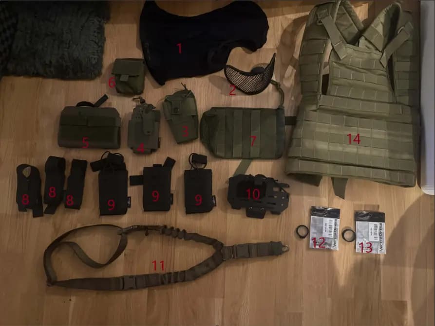 1- nb tactical balaclava svart - 100kr///2- nb tatical prime munskydd - 300kr///3- radiofika molle(oanvänd) - 50kr///4- radiofika molle(oanvänd) - 150kr///5- mobilecase molle(oanvänd) - 200kr///6-ciggpak fika molle(oanvänd) - 100kr///7- vattenflaska fika molle(oanvänd) - 100kr///8- pistol mags fikor svartresgear- 200kr styk///9- ar15 mags fikor svart resgear - 300kr styk///10- onetigris mobilcase molle(oanvänd)- 100kr///11- tasmaniantiger belt - 400kr///12- sikteskydd victoroptic(oanvänd) - 100kr///13- victoroptic siktesskydd(oanvänd) - 100kr///14- väst(oanvänd) - 200kr