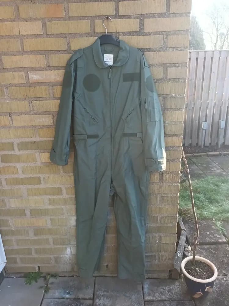 Säljer en overall som är i toppskick. Använder dragkedja för att försluta overallen.