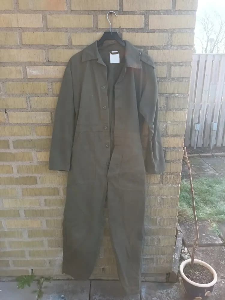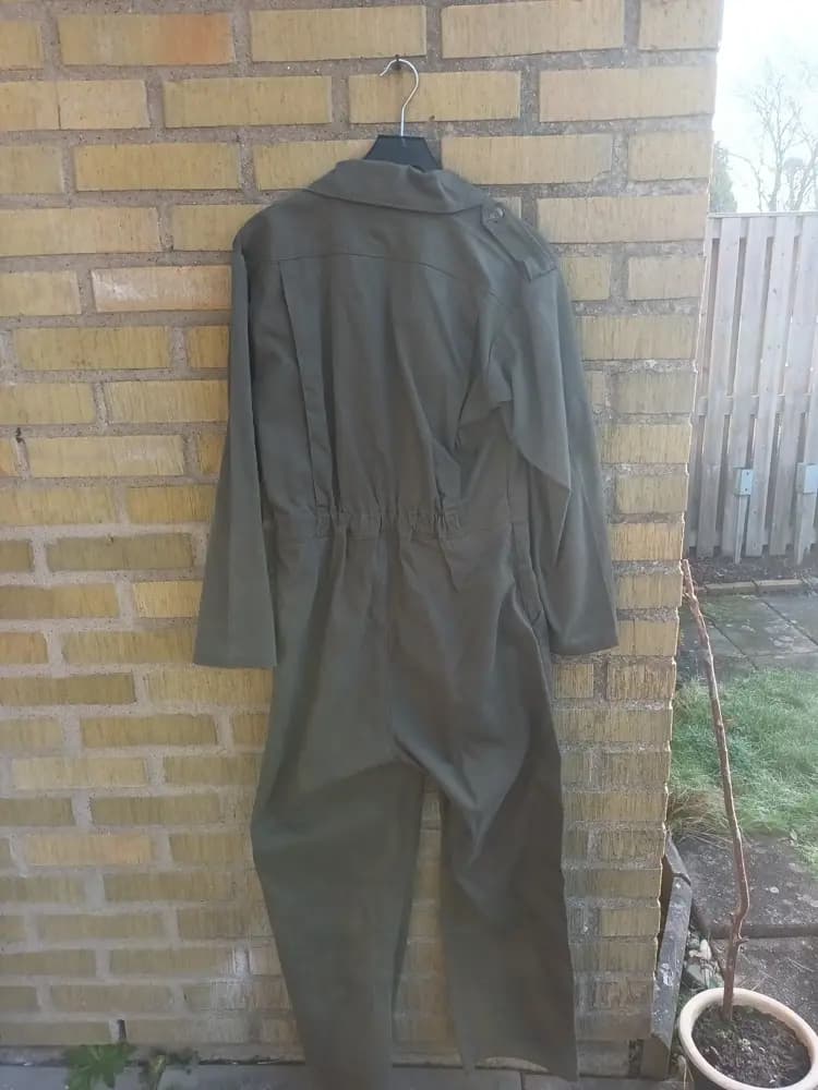 Säljer en overall som är i toppskick. Använder knappar för att försluta overallen.